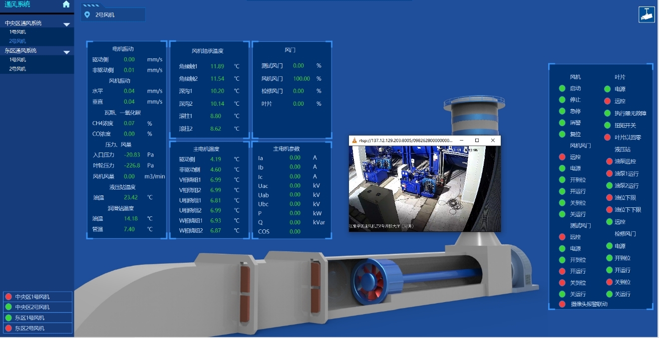 通過(guò)視頻監(jiān)控系統(tǒng)實(shí)現(xiàn)操作界面與現(xiàn)場(chǎng)視頻信號(hào)的交互,實(shí)時(shí)查看現(xiàn)場(chǎng)運(yùn)行工況,并根據(jù)事故報(bào)警等級(jí)調(diào)用監(jiān)控畫面,當(dāng)報(bào)警及故障發(fā)生時(shí),可以及時(shí)自動(dòng)彈出現(xiàn)場(chǎng)畫面,方便操作員及時(shí)處理系統(tǒng)故障。