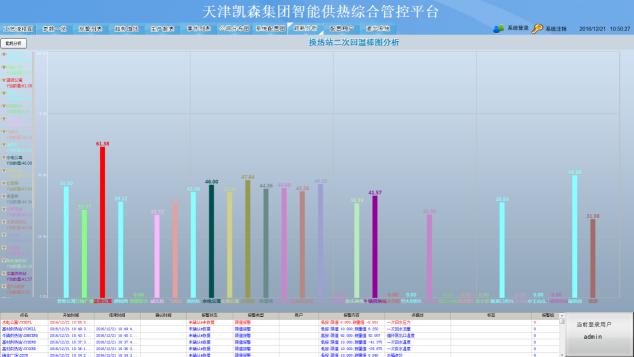 將采集的數據進行歸納、分析和整理,實現基礎熱力管理功能,包括各個供熱站和換熱站的二次供水溫度、二次回水溫度等重要對比數據,以便可以更好地進行片區同類供熱區域供熱效率進行直觀有效地比對,從而能指導運行人員進行查找原因和后續改進。