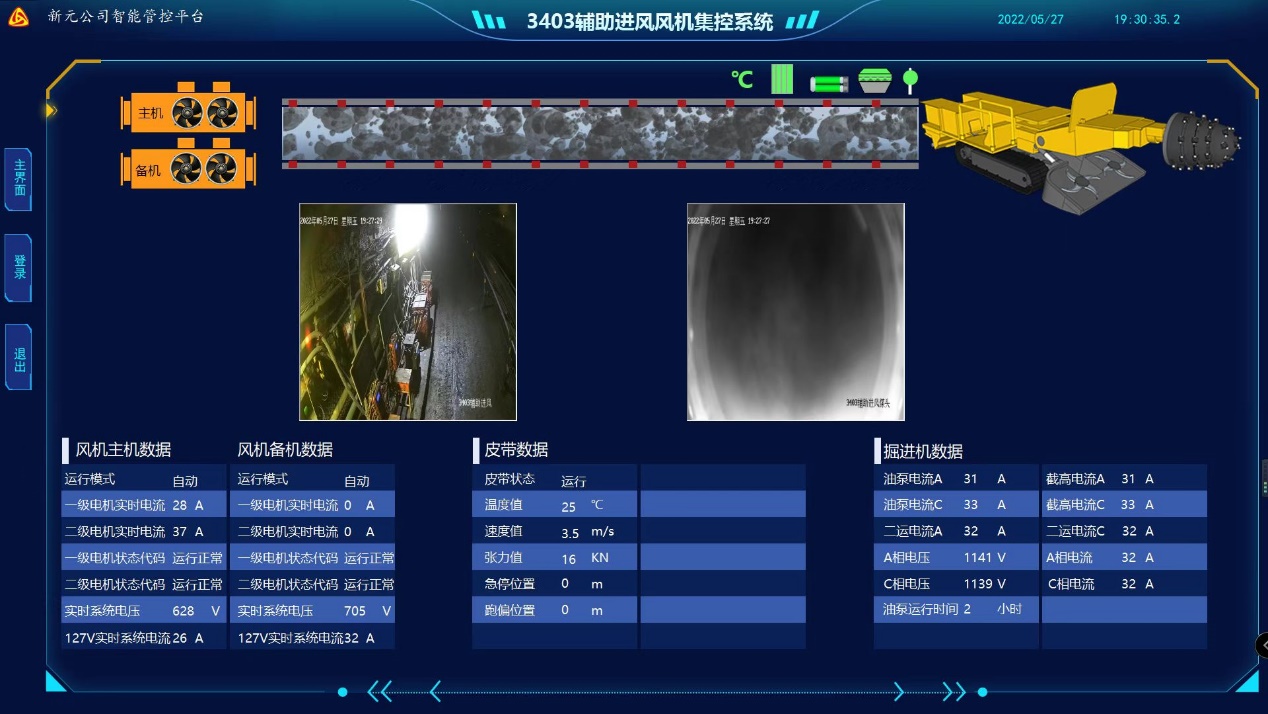 新元公司綜合管控平臺采用力控家族組態(tài)軟件,采用數(shù)據(jù)采集與歷史存儲雙冗余架構(gòu),保證了遠程監(jiān)控可靠穩(wěn)定運行,實現(xiàn)了主運輸皮帶、局部通風機遠程、綜采工作面、主通風機集中監(jiān)控;實現(xiàn)了配電室、井下水倉、瓦斯泵站、壓風機等系統(tǒng)無人值守,在管控一體化思想的指導下,結(jié)合工業(yè)自動化技術(shù)、信息化技術(shù)、移動和固定網(wǎng)絡(luò)通信技術(shù)等一系列現(xiàn)代化手段,實現(xiàn)生產(chǎn)過程自動控制和監(jiān)測;同時增加了手機移動端的開發(fā),方便管理人員隨時查看井下設(shè)備的運行情況,提高了管理人員對現(xiàn)場的把控能力,實現(xiàn)了安全和效益的雙提升。