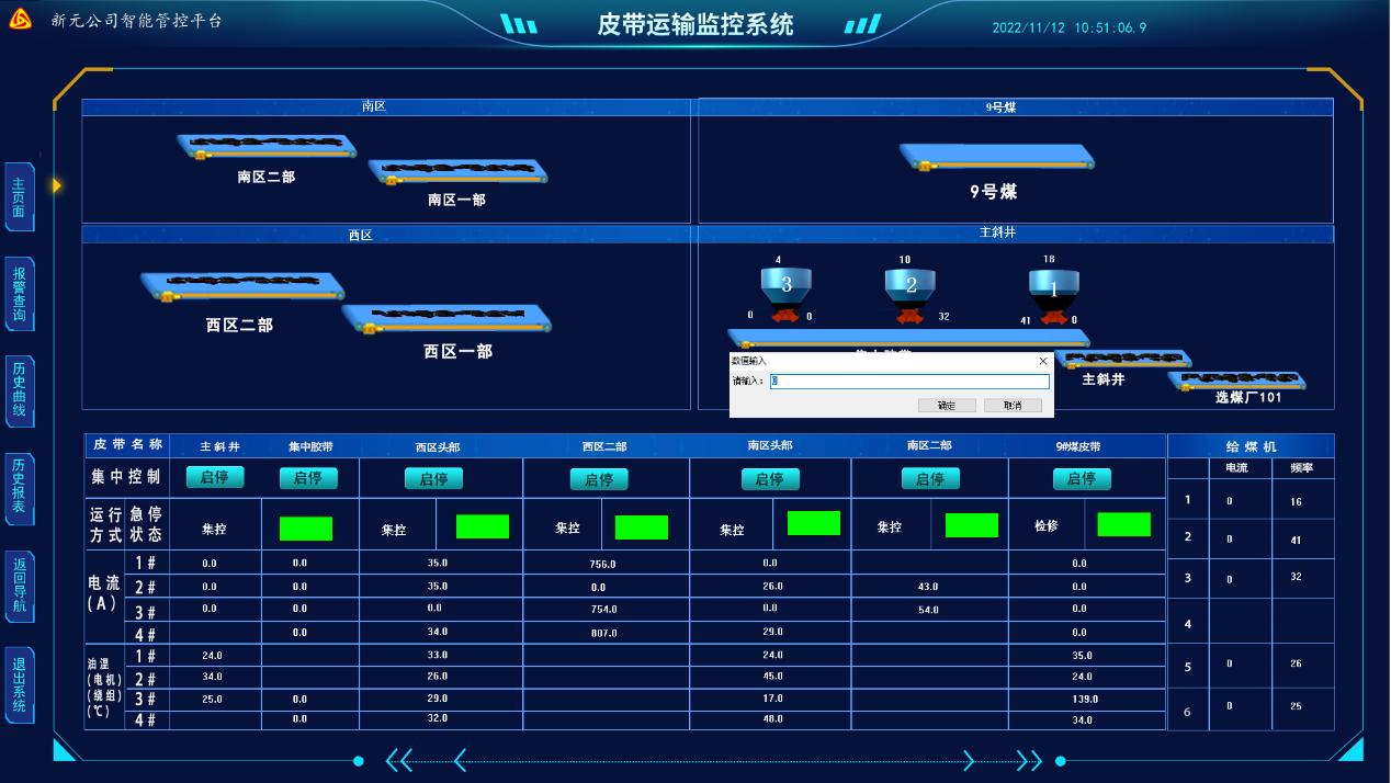 操作員站可以對皮帶機、水泵、壓風機等設(shè)備進行遠程控制。