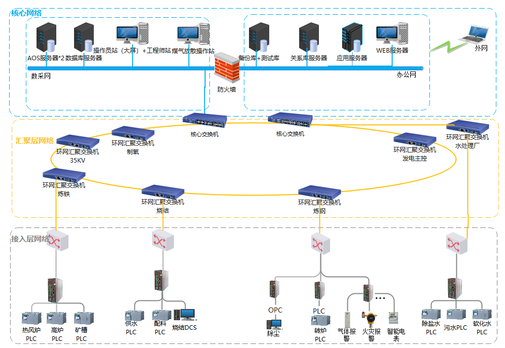 根據華信特鋼能源數采的發展規劃,滿足能源調度系統穩定運行,本項目將搭建數采專網,同時補充各采集網關到控制系統的網絡。