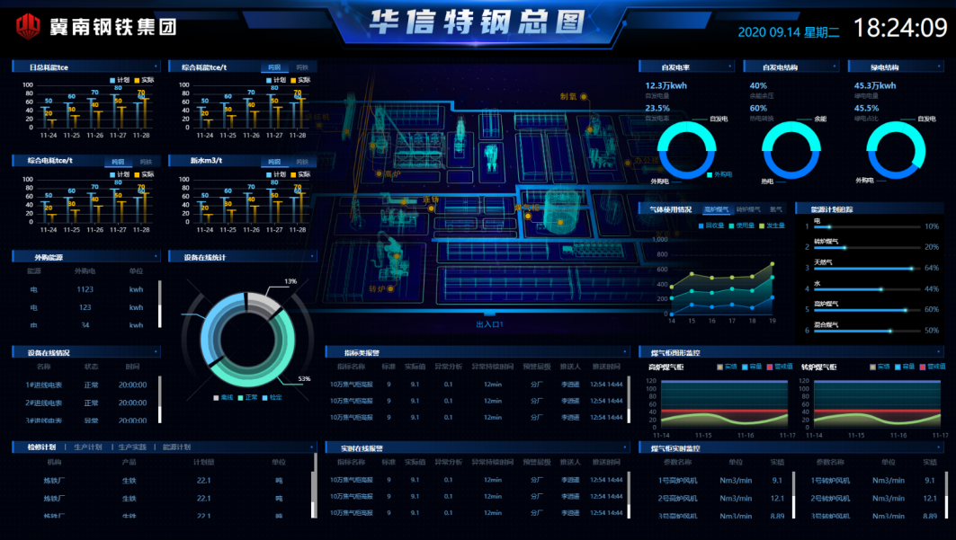 按照華信特鋼管控中心的總體定位和管理需求,系統建設完成后使企業在能源管理過程中規章制度更加完善、組織機構更加合理、業務流程更加優化。企業依托能源管控系統平臺的支撐,通過優化能源管理和建立能源體系相結合的手段來保證能源的生產和耗用達到安全穩定、經濟平衡、優質環保和提高勞動生產率的目標。同時以數據采集系統為支撐,實現在線過程監控、能源調度、能源管理一體化管控功能。