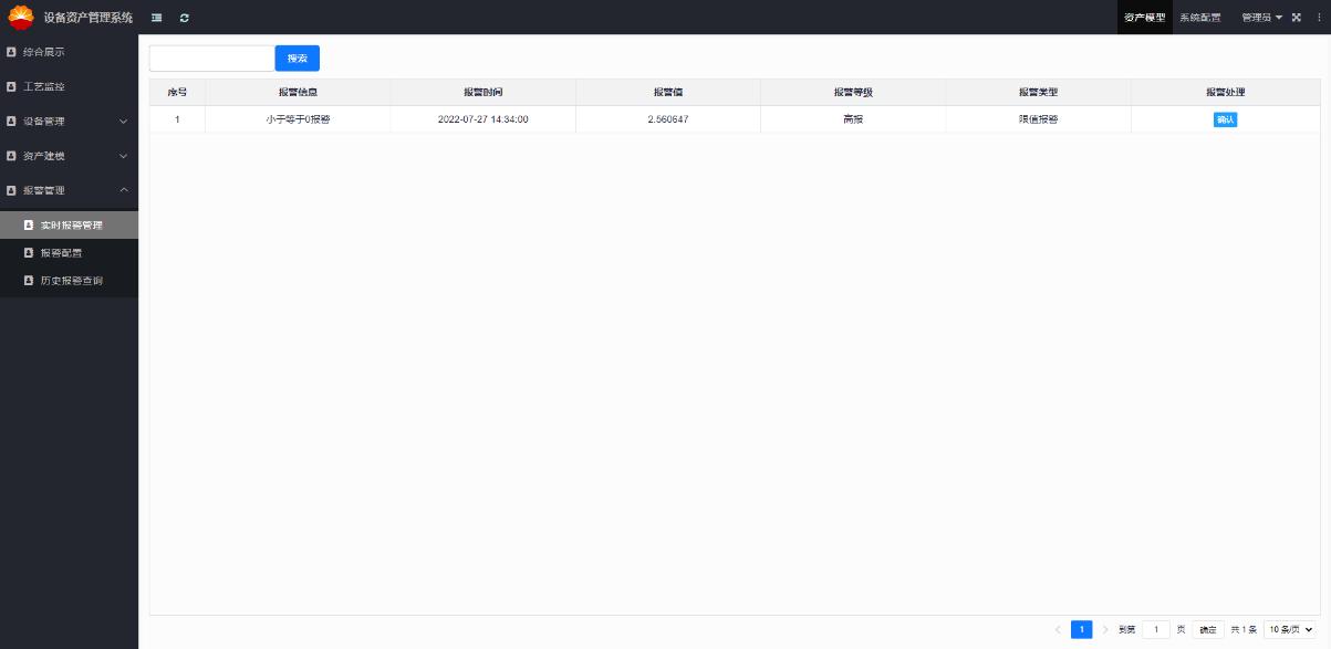 系統可以對設置了報警參數的數據測點,在此功能中集中展示,內容包括報警測點的詳細信息,管理者或者其他用戶也可以通過條件篩選的方式來對報警信息進行過濾,選出自己需要的報警信息來進行針對性處理。