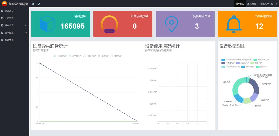 該模塊可以針對需要進行預警的設備,進行報警參數的設置,因為設備上綁定有對應的數據測點,設置測點報警后,系統則視為當前設備存在一定故障,在畫面的綜合展示報警部分中,就會對當前報警設備數加1,客戶能夠直觀的發現此變化,這樣就能快速的發現對應測點關聯的設備,進行有針對性的報警處理。