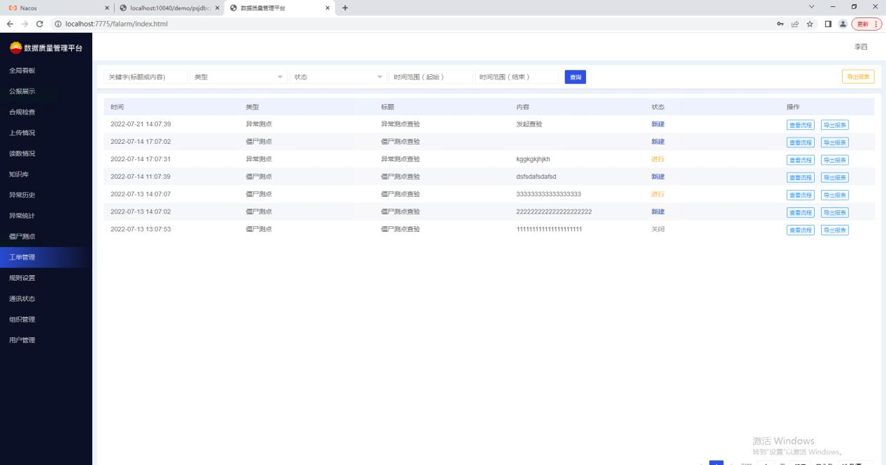 工單管理中各層級權限可以建立工單,二級單位收到分公司下發自己管轄內的異常點或者僵尸點,并作出判斷。二級單位確認測點后,導出異常點或僵尸點列表,到采集站內刪除。回傳到分公司權限內,分公司進行數據庫刪點操作。
