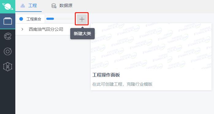 工程模塊,是用戶對工程進行管理的入口,包括工程的新建、刪除、修改等,同時也可以對工程的初始啟動窗口、運行、權限等配置。