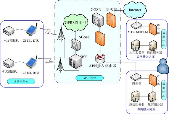 遙測站通過各種傳感器檢測水情、工情、雨情、墑情、地理數據、用戶數據、沿線引水閘、節制閘、上下游水位、閘門開啟高度、設備運行狀態等參數,通過無線網絡GPRS將現場采集的數據傳回控制中心的實時數據庫,實現整個灌區的數據共享。