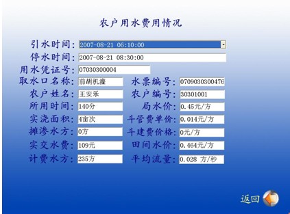 由綜合數據庫服務器、信息傳輸系統、各泵站、水管站現場工作站及分布于灌區各典型收益村鎮、各用水大戶等處的電腦顯示系統、電腦觸摸屏查詢系統等組成。該系統運用計算機語音仿真技術和網絡通信技術,可使灌區所有水管職工和用水戶及社會各界人士隨時對自己及他人各類灌溉用水參數、水量及水費繳納情況進行電話查詢和電腦觸摸屏查詢,并能查詢灌區管理機構、灌溉管理知識、水價優惠政策等相關信息,使灌區供用水情況及灌區管理情況完全置于廣大用水戶的公開監督之下,從而使灌溉管理透明化、公開化,徹底杜絕以水謀私等各類不正之風,更好服務于灌區用水戶及區域經濟發展。
