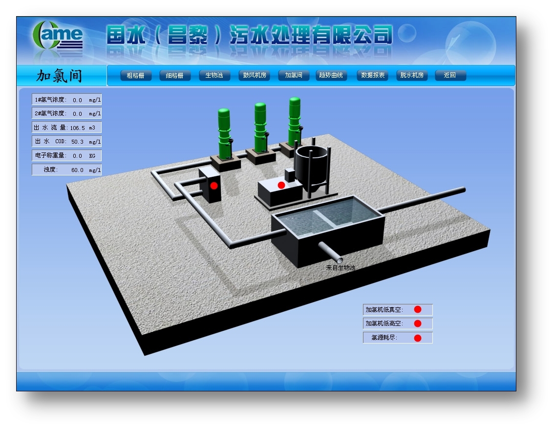 污水出廠前采用液氯消毒,經(jīng)接觸池后出水由管道排向大海。需要監(jiān)測加氯機狀態(tài)、氯氣濃度、氧氣濃度、出水流量、出水cod、電子秤重量、濁度等參數(shù)。