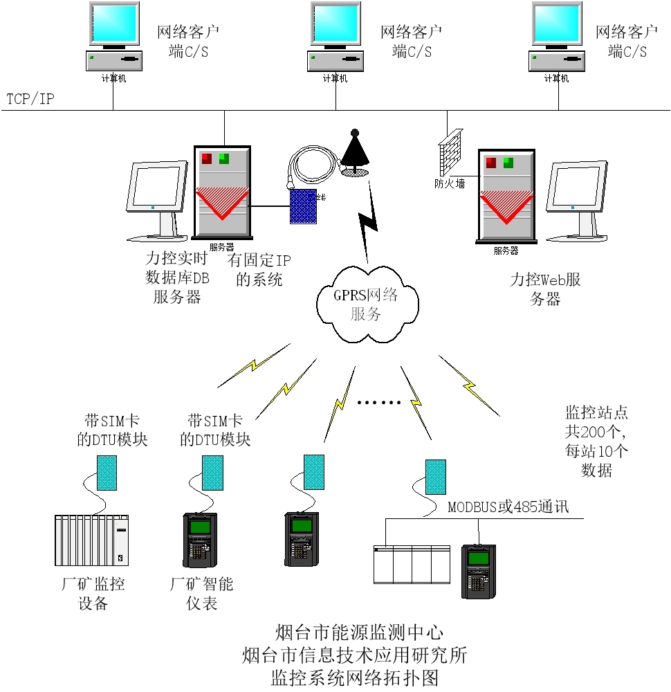 一、GPRS無線采集監(jiān)控系統(tǒng)網(wǎng)絡拓撲圖