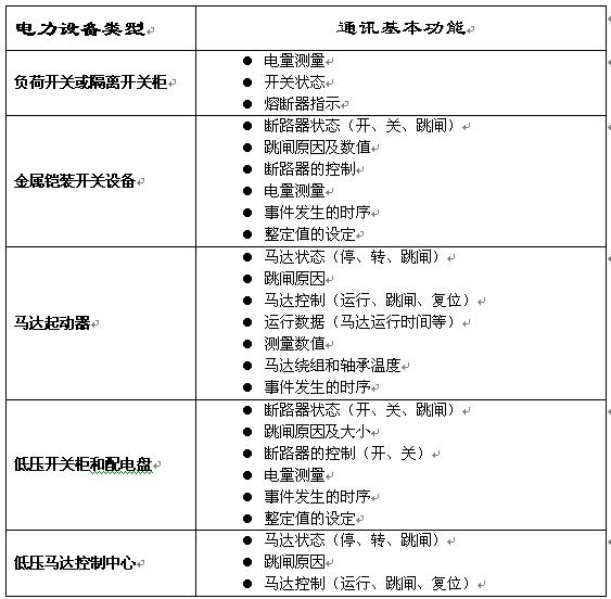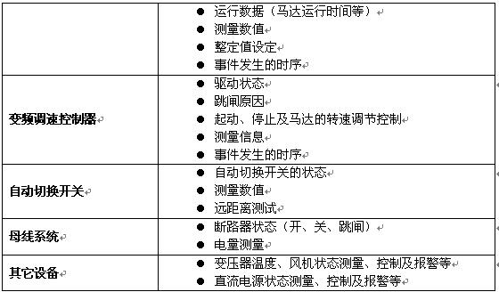附錄: 力控系統對各電力設備實現的監測、保護、控制通訊基本功能。