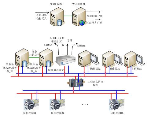 該系統是融合了先進的現場總線技術、控制/通訊冗余技術、數據庫技術、SCADA/HMI技術及客戶/服務器(C/S)、B/S技術等為一體化的集成控制系統工程。以力控監控組態軟件為基礎,搭建了一個風電場各項監控、監測數據信息共享、交換、傳輸的平臺;針對運營商、投資商、制造商以及技術研發單位,提供遠程分布終端綜合監測系統、電場多協議中央監控系統、狀態監測系統、故障診斷系統及缺陷跟蹤系統;通過創建風電行業數據倉庫,組建風資源前期規范及評估、產能預報、風電場運營管理等專家系統;提供技術咨詢及數據咨詢服務。