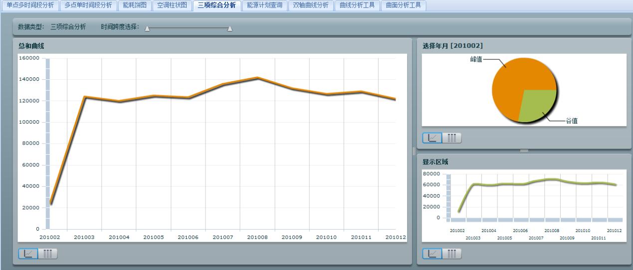 能源實績有日、月、季、年能源實績表(包括電、熱、水等不同分析切入點);能源計劃有日、月、季、年能源供需計劃表(包括電、熱、水等不同分析切入點)。計劃與實績比較有同比環(huán)比分析,其中包括柱狀、曲線、餅圖。
