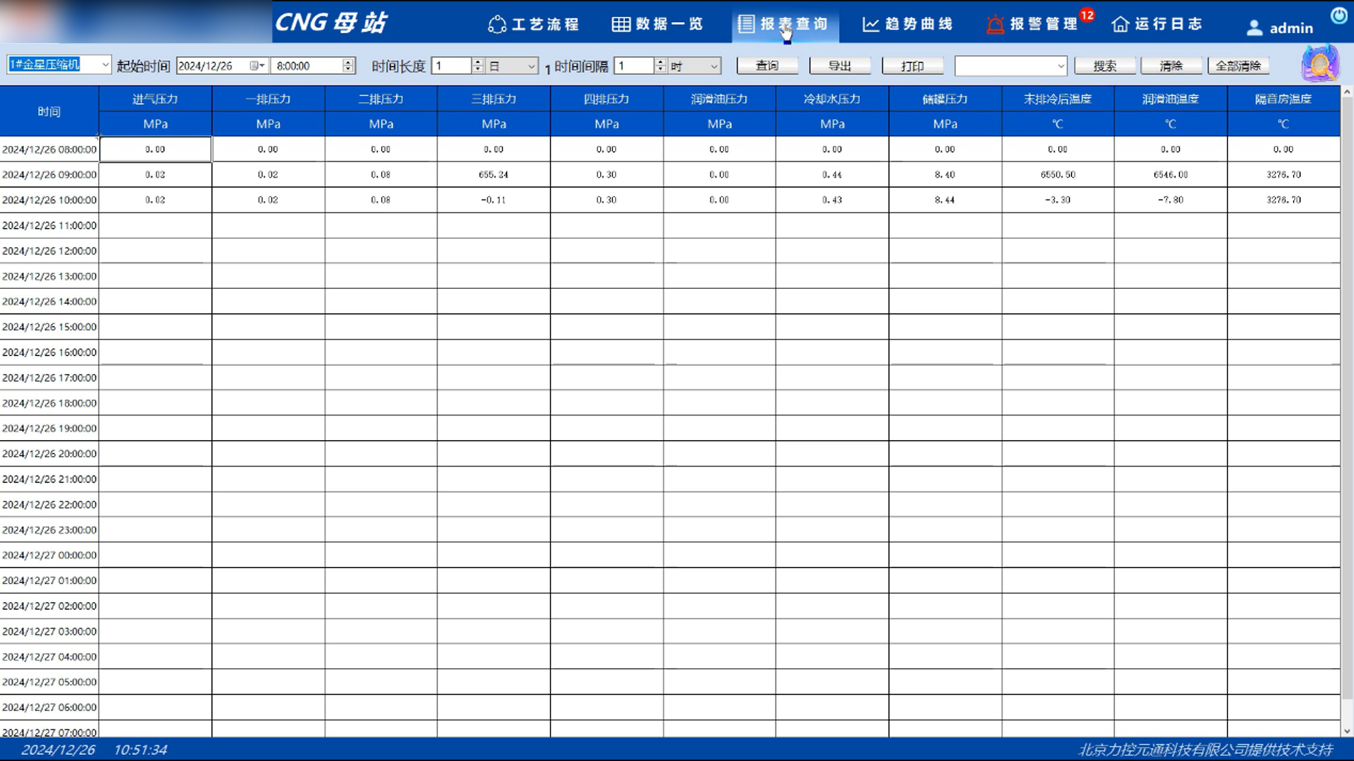 CNG加氣母站站控系統(tǒng)通過集成壓縮機(jī)升壓、工藝管道控制、加氣機(jī)管理等子系統(tǒng),實現(xiàn)了天然氣壓縮、凈化、儲存及加注等過程的全面自動化控制,借助遠(yuǎn)程數(shù)據(jù)采集與智能診斷顯著提升生產(chǎn)效率和設(shè)備可靠性,有效降低人工操作強度與失誤率。系統(tǒng)支持實時/歷史趨勢圖分析功能,操作人員可通過動態(tài)曲線對比歷史同期數(shù)據(jù),追蹤壓縮機(jī)溫度、壓力等關(guān)鍵參數(shù)變化趨勢,并可將多組曲線組合保存以便快速調(diào)用,助力系統(tǒng)持續(xù)優(yōu)化運行。