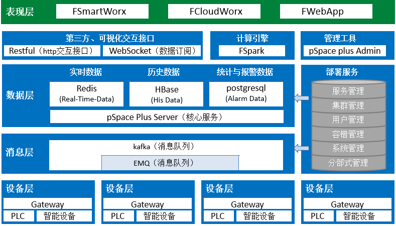 力控云端實時歷史數據庫pSpace plus可獨立部署于云環境,完成物聯數據采集、傳輸、存儲、處理、展示的全過程,具備實時數據庫、時序數據庫、SQL 數據庫等特征,提供海量數據來支撐智能工廠的調度與現場級的智能優化。可與第三方開放平臺進行深度融合,形成工業互聯網平臺解決方案,利用 AI 引擎打造工業新業態來推動產業生態升級。