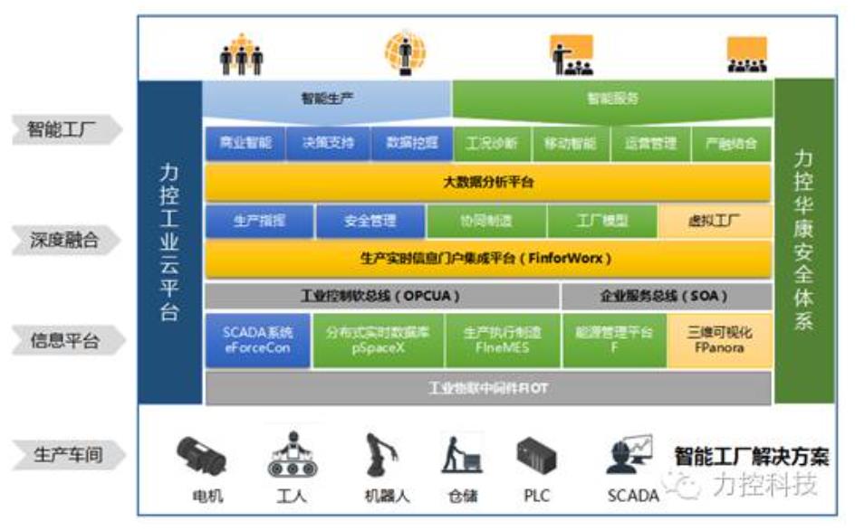 而力控科技近期推出的以OPC UA統一架構的FIOT工業物聯網解決方案,力控智能門戶集成平臺 FinforWorx、面向多屏監控的跨平臺可視化FsmartWorx、力控工業安全隔離網關 pSafetylink、力控工業安全防火墻 H-ISG于一體的力控智能工廠解決方案,更是瞄準了“生產過程智能化”多個環節,完成企業信息化的綜合集成。綜合利用ForceCon平臺建設信息系統的深度融合服務于企業完成數字化、智能化轉型,建設智能工廠生態系統。