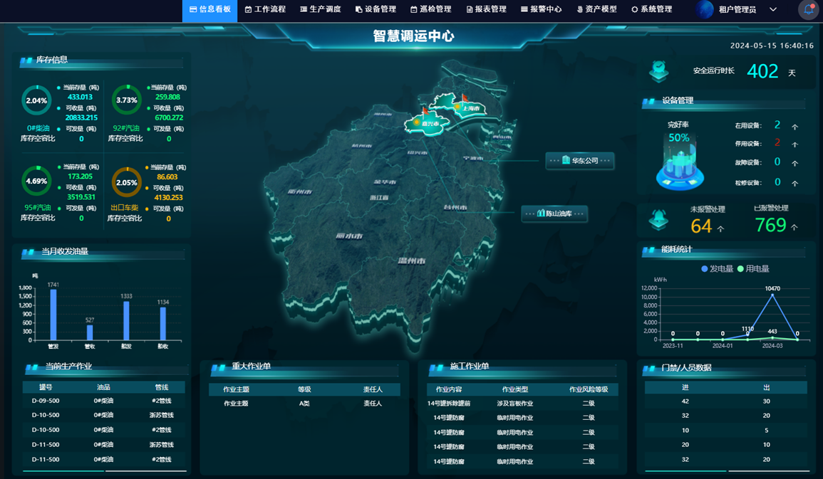? 全量數據規范化管理與分析,實時掌握收發油任務進展,以及油庫業務信息;
