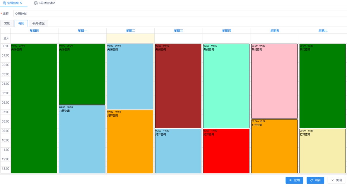 在引入時間調(diào)度表后,工廠可根據(jù)車間內(nèi)的溫度和濕度需求,自動調(diào)整風(fēng)機和空調(diào)的運行狀態(tài),在夏季高溫時段,自動開啟空調(diào)進行降溫;而在冬季寒冷時段,則關(guān)閉空調(diào)并開啟風(fēng)機進行通風(fēng)換氣。