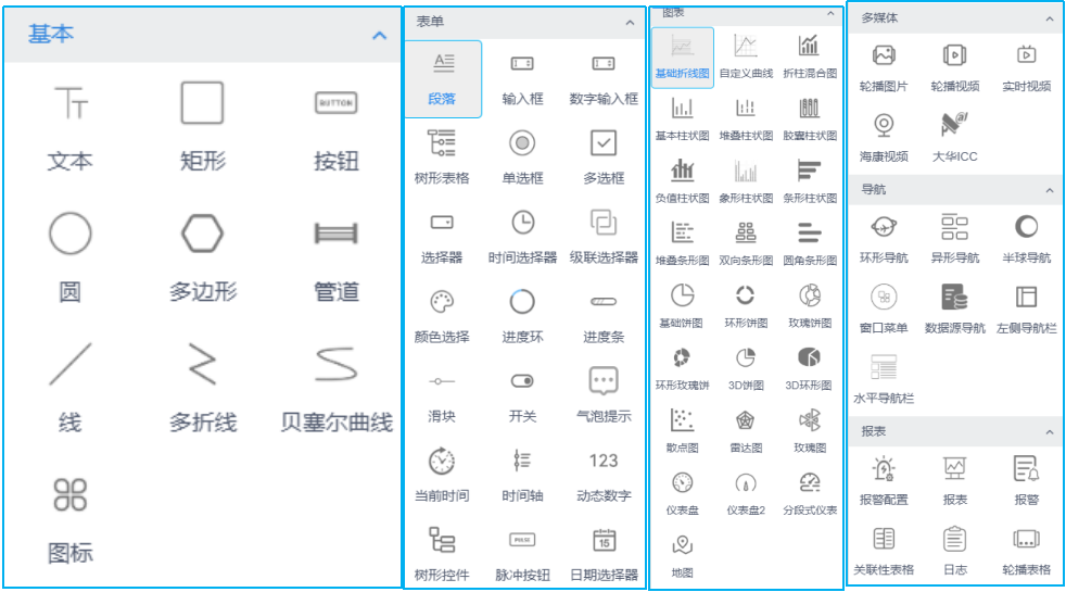FWebSCADA 在組態設計上極具優勢,支持所見即所得的畫面組態功能,拖拉拽方式即可完成簡單組態界面。多維度可視化,支持靈活的報表應用,全方位的報警展示、豐富的圖表圖庫以及與視頻、多媒體、GIS系統  無縫集成。可選擇JavaScript和VBA兩種腳本語言。2D/3D自由組合,可打造數字孿生場景。
