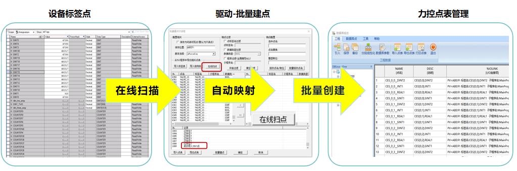 該功能涵蓋四大核心模塊:PLC標簽在線掃描、PLC點表文件離線導入、數據庫點表映射及點表層級管理