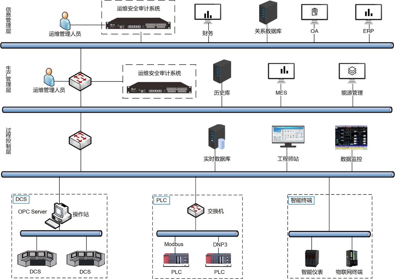 在信息管理層和生產(chǎn)管理層部署堡壘機(jī),對(duì)服務(wù)器、網(wǎng)絡(luò)設(shè)備、安全設(shè)備進(jìn)行日常操作與運(yùn)維的安全防護(hù),使用數(shù)字證書作為數(shù)據(jù)庫(kù)系統(tǒng)身份認(rèn)證方式。強(qiáng)制規(guī)定密碼復(fù)雜度規(guī)則、密碼有效時(shí)限、密碼長(zhǎng)度、密碼嘗試次數(shù)、密碼鎖定等。僅設(shè)置一位管理員具備系統(tǒng)權(quán)限,其余數(shù)據(jù)庫(kù)賬號(hào)僅授予能夠滿足使用需求的最小權(quán)限。堡壘機(jī)扮演著看門者的職責(zé),所有對(duì)網(wǎng)絡(luò)設(shè)備和服務(wù)器的請(qǐng)求都要從這扇大門經(jīng)過(guò)。因此安全管理與審計(jì)系統(tǒng)能夠攔截非法訪問(wèn)和惡意攻擊,對(duì)不合法命令進(jìn)行阻斷、過(guò)濾掉所有對(duì)目標(biāo)設(shè)備的非法訪問(wèn)行為并記錄詳細(xì)信息。堡壘機(jī)具備輸入輸出審計(jì)功能,不僅能夠詳細(xì)記錄用戶操作的每一條指令,而且能夠?qū)⑺械妮敵鲂畔⑷坑涗浵聛?lái);具備審計(jì)回放功能,能夠模擬用戶的在線操作過(guò)程,豐富和完善了網(wǎng)絡(luò)的審計(jì)功能。安全管理與審計(jì)系統(tǒng)能夠在自身記錄審計(jì)信息的同時(shí)在外部某臺(tái)計(jì)算機(jī)上做存儲(chǔ)備份,可以極大增強(qiáng)審計(jì)信息的安全性,保證審計(jì)人員有據(jù)可查。系統(tǒng)管理員可以通過(guò)多種查詢條件查看審計(jì)信息。堡壘機(jī)保護(hù)單位內(nèi)部網(wǎng)絡(luò)設(shè)備及服務(wù)器資源的安全性,使得單位內(nèi)部網(wǎng)絡(luò)管理合理化和專業(yè)化。