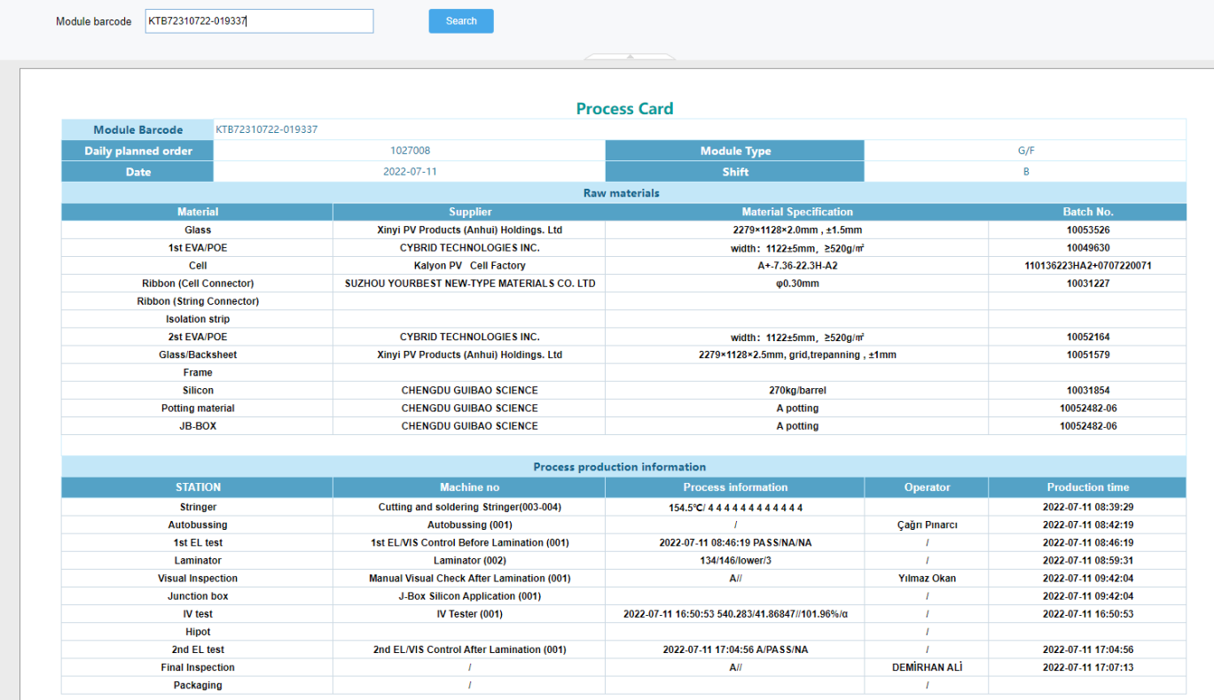 * SPC分析功能:可自動采集質量檢測數據,或人工導入質量數據做SPC質量分析,新增SPC質量分析模塊,讓產品的生產過程數據記錄在檔,強大的分析功能讓質檢人員只需選擇導入已過濾的樣本數據,即可分析出產品的優(yōu)劣,大幅縮短質量分析的時間,時間縮短 87% 以上。 * CPK分析功能:對質量檢測項目和數據進行CPK計算和分析,自動算出在記錄設備的CPK匯總值,時間縮短50%以上。 * 膜厚、折射率抽檢數據采集及分析:統(tǒng)計分析抽檢膜厚、折射率的電池片數量、質量檢測數據,減少人工50% 。